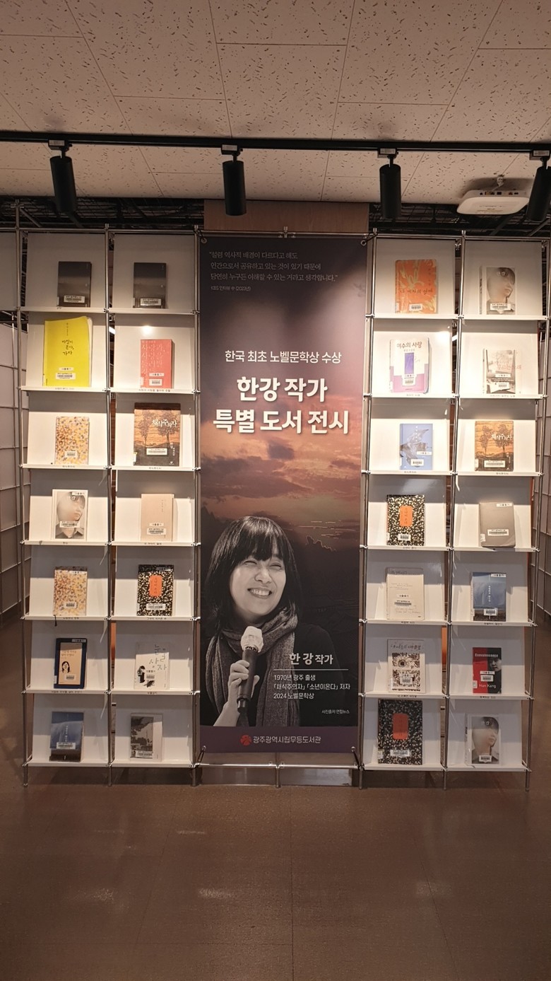 [광주 세계타임즈=손권일 기자] 광주광역시립도서관은 한강 작가의 노벨문학상 수상을 기념하는 특별 도서 전시를 오는 12월 말까지 무등·사직·산수도서관 3곳에서 운영한다.