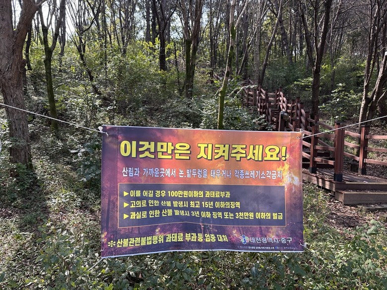 또한, 주민들과 관광객들의 적극적인 산불 예방 참여를 유도하기 위해 도로변 현수막 게시 등 다양한 홍보 활동도 병행할 예정이다.