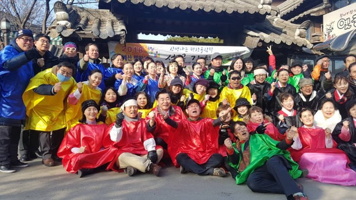 지난 1월 1일, 2018년의 새로운 해가 떠오른 아침. 우리나라 국가대표팀 응원단인 ‘글로벌 아리랑응원단’의 권태균 단장(옛골토성 대표)가 청계산에서 2018 그릇의 떡국을 나눠주는 행사를 진행했다. 이번 행사는 2018년 2월 열리는 평창 동계올림픽의 성공적 개최와 2018러시아월드컵에서 국가대표팀의 선전을 기원하기 위한 것이었다.