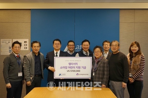 글로벌 반도체 장비기업 램리서치가 18일 경기도 성남시 판교에 위치한 한국 지사 램리서치코리아(대표이사 서인학)에서 소아암 어린이 지원을 위한 기금 미화 10만달러를 한국백혈병어린이재단(이사장 오연천)에 전달했다. 전달된 기금은 한국백혈병어린이재단을 통해 소아암 어린이 치료비와 어린이날 선물 지원에 사용된다.