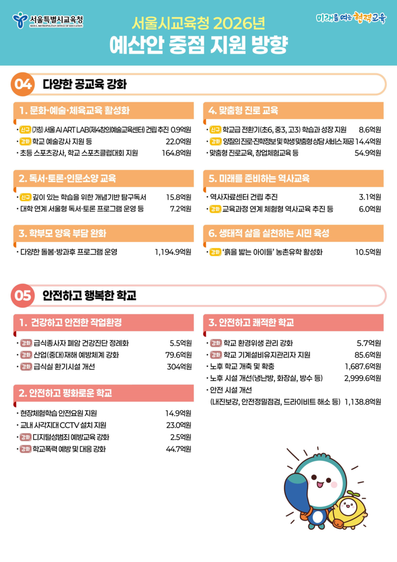 붙임 : 서울특별시교육청 2026년 예산안 중점 지원 방향