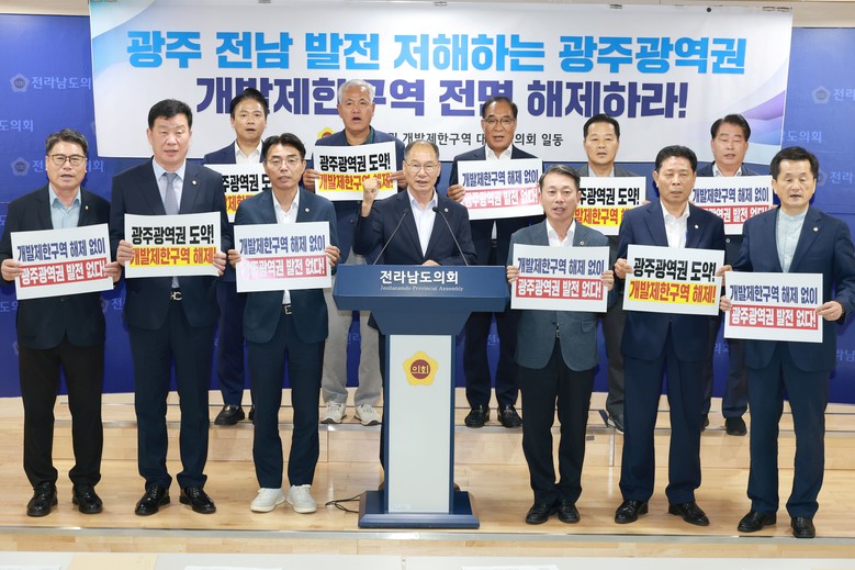 [전남 세계타임즈=우덕현 기자] 광주광역권 개발제한구역 대책협의회(대표 이규현 의원)는 지난 8월 26일 전라남도의회 브리핑룸에서 성명을 발표하고, 1973년부터 50년 넘게 이어져 온 광주광역권 개발제한구역의 전면 해제를 정부에 강력히 촉구했다.
