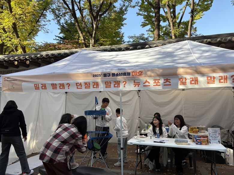 ‘밀래 말래? 던질래 말래? 뉴스포츠 할래?’ 부스는 누구나 쉽게 즐길 수 있는 뉴스포츠 두 종목, 플로어 컬링과 디스크 골프를 소개하고 체험 기회를 제공했다. 약 300명의 시민이 부스를 방문해 학생들의 안내에 따라 뉴스포츠를 즐겼다. 특히 또래 청소년들이 많이 참여하며 활기찬 분위기를 더했다. 부스 운영을 도운 한양중학교 1학년에 재학 중인 한 학생은 “처음 축제 체험 부스를 운영해 보았는데 재미있었다. 친구들이 즐겁게 체험하는 모습을 보니 보람을 느꼈다”라고 말했다.