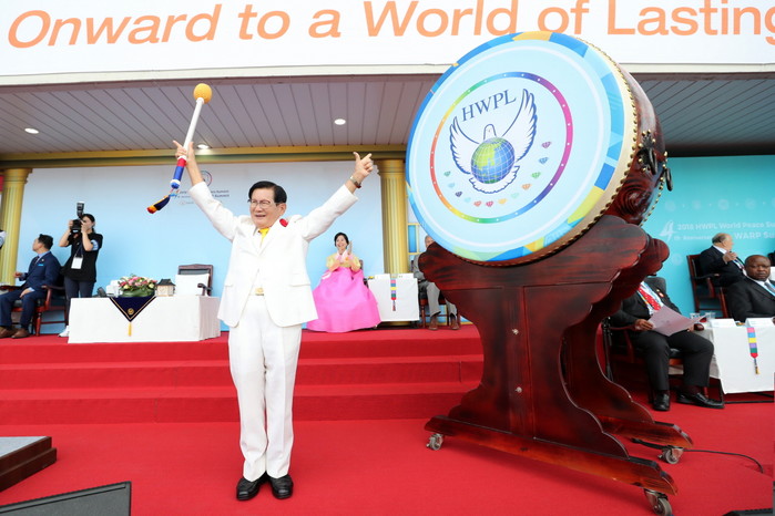 이어진 기념식에서 이만희 HWPL대표는 기념사를 통해 “전쟁종식과 평화를 이룰 답이 HWPL를 통해 널리 알려지고 있다”며 “우리 HWPL 평화의 사자들도 지구촌을 쉬지 않고 다니며 DPCW(지구촌 전쟁종식 평화 선언문) 10조 38항이 답임을 알려왔다”고 말했다. 이 대표는 “각국 전·현직 대통령도, 대법원장들도, 대학 총장들도, 교육부 장관들도 전쟁종식 평화를 지지했고, DPCW 10조 38항을 지지했으며, HWPL과 협력하고 있다”고 강조했다.