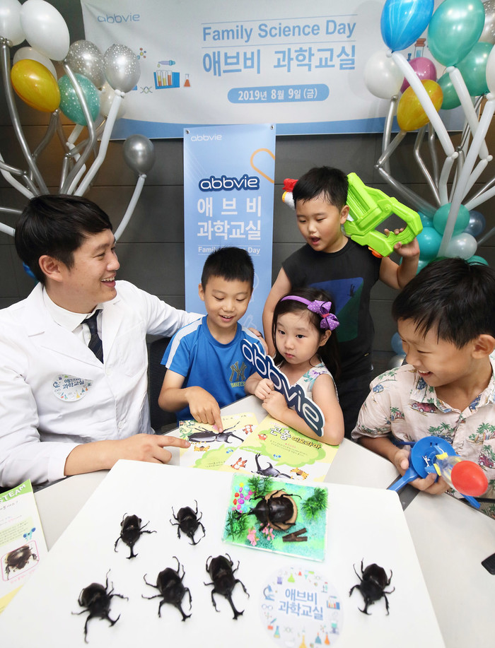 ‘패밀리 사이언스 데이’는 임직원 자녀들에게 다양한 의학 및 제약의 근간인 과학 원리를 생활 속에서 가족이 체험할 수 있는 기회를 제공하고 임직원들의 소속감을 높이고자 진행되는 가족 친화 프로그램의 일환이다. 올해로 9회째를 맞이하는 한국애브비 사이언스 데이는 임직원 자녀들의 참여를 높이기 위해 매년 여름방학 시즌인 8월 둘째 주 금요일에 진행된다.