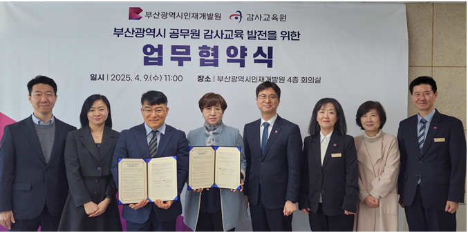 김순식 감사교육원장은 “감사교육원은 국가 최고 감사 기구의 교육기관으로, 부산시와의 업무협약(MOU) 체결을 통해 지역 맞춤형 감사 교육의 모범 사례를 만들어 가겠다”라고 전했다.
