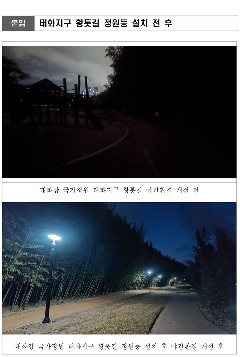 울산시 관계자는 “이번 정원등 설치로 이용객들의 안전과 범죄예방은 물론 이용객들이 더욱 증가할 것으로 기대된다”라며 “앞으로도 꾸준한 시설 개선을 통해 아늑하고 편안한 정원환경을 조성할 예정”이라고 밝혔다.