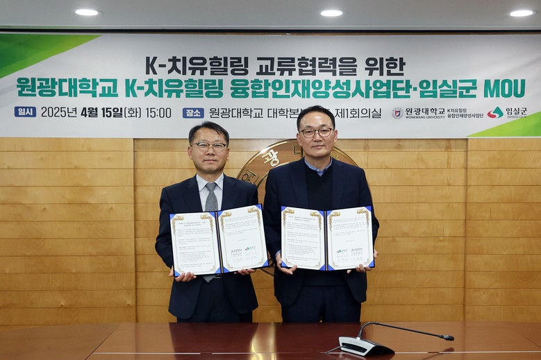 원광대 대학본부 회의실에서 열린 이번 협약식은 이진관 임실 부군수와 김흥주 K-치유힐링융합인재양성사업단장 등 양 기관 관계자들이 참석한 가운데, 협약에 따라 양 기관은 반려동물 프로그램 공동개발 및 K-치유힐링 관련 융합인재 양성을 위해 협력하기로 뜻을 모았다.