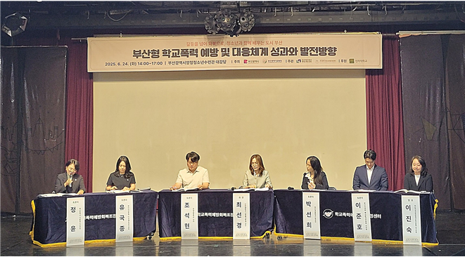 ◈ 향후 발전 방향으로, ▲현장사례 기반 콘텐츠 개발 ▲또래조정자 양성체계 구축 ▲교사 및 학부모 교육 ▲행 [세계타임즈=부산 이용우 기자] 부산시(시장 박형준)는 지난 6월 24일 양정청소년수련관에서 '부산형 학교폭력 예방 및 대응체계 성과와 발전방향' 토론회를 성공적으로 마쳤다고 밝혔다.