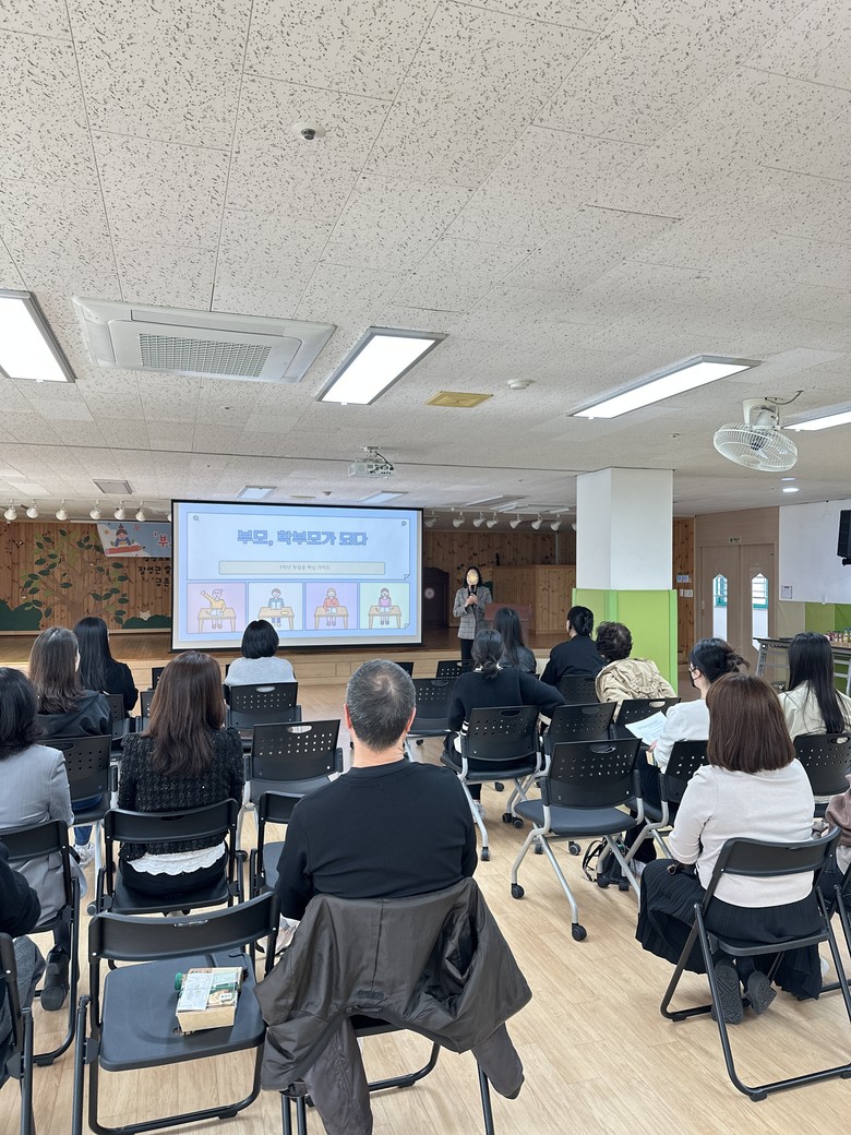 이번 연수에서는 초등학교 입학을 앞둔 자녀의 발달 단계 이해, 가정에서의 학습 습관 형성, 학교생활 적응을 돕는 구체적인 실천 방안 등이 안내되었다.