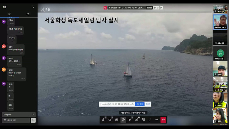 이번 독도교육은 ‘와우 아이디어스’ 원격수업 플랫폼을 통해 ‘독도 항해로 배우는 도전과 시맨십’을 주제로 강연을 진행하였다. 학생들은 독도 항해 영상과 실제 세일링 탐사 사례를 시청하며 해양안전, 협동, 도전정신의 의미를 배우는 시간을 가졌다. 특히 “한강에서 만난 인연은 외롭지 않다. 한강은 바다로 연결되어 있다. 바다는 함께 협력할 때 안전하게 나아갈 수 있다”는 교사의 메시지를 통해 해양정신과 사제동행 공동체의 가치를 함께 배웠다.