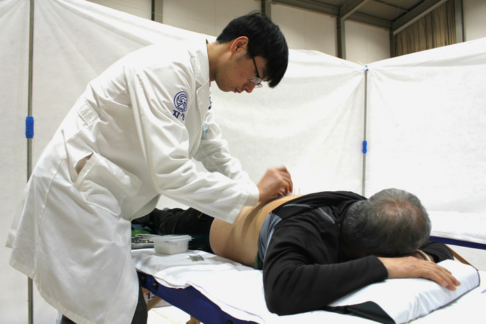 | ▲ 대전자생한방병원 의료진이 금산군 주민에게 침치료를 실시하고 있다 |