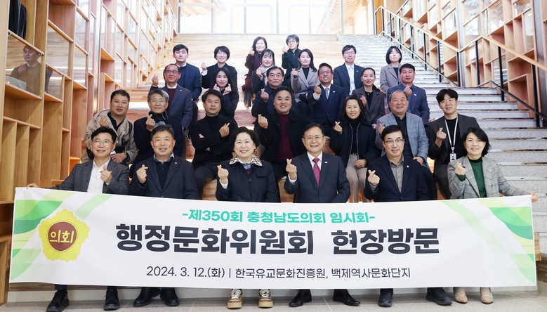 [충남 세계타임즈=백택기 기자] 충남도의회 행정문화위원회(위원장 김옥수)는 제350회 임시회 기간 중인 12일 한국유교문화진흥원(이하 ‘진흥원’)과 백제문화단지(이하 ‘문화단지’)를 방문했다.