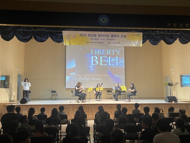 [남양주시 세계타임즈=송민수 기자] 남양주시와 스피릿앙상블이 함께하는 <2025 학교로 찾아가는 클래식 교실>이 9월 4일(목) 경기도구리남양주교육지원청 가양초등학교(교장 김영신)에서 열렸다.