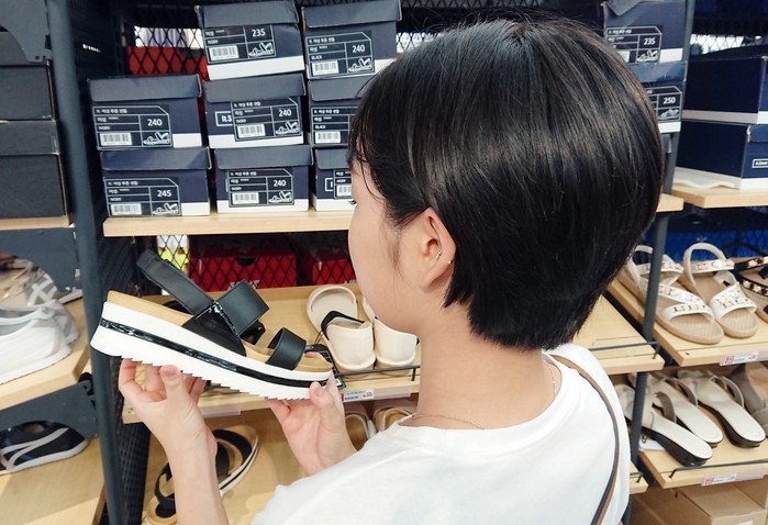 | ▲ 한 여성이 신발 매장에서 플랫폼 샌들을 고르고 있다. |