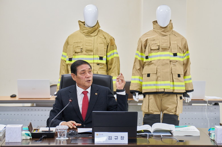 김규창 부의장은 마지막으로 "방화복은 소방관의 생명과 직결되는 장비인 만큼 가장 좋은 성능을 가진 화재진압용 방화복이 필요하다"고 역설하며, "소방대원들의 수요를 적극 반영하여 착용감과 활동성이 우수한 방화복을 화재 현장에서 활동하는 대원들에게 우선적으로 제공함으로써, 도민의 생명과 재산을 지켜주시길 바란다"고 당부하며 질의를 마쳤다.