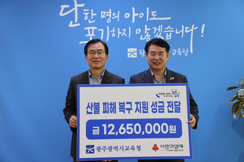 전달된 성금은 본청과 동·서부교육지원청, 12개 직속기관 등 15개 기관 직원 559명이 마음을 모은 것이다. 기탁된 성금은 피해 지역 긴급 복구와 주민 생활 안정 등을 지원하는데 활용될 예정이다.