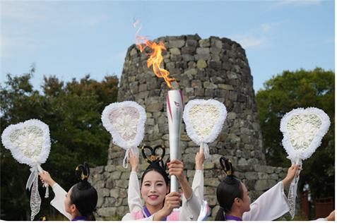이순신 장군의 부산대첩 승전로를 따라 해상 봉송된 '비상의 불'은 유라시아 대륙 철도의 관문인 부산역에서 시민의 기대를 안고, 오는 10월 13일 까지 시청에 보관된다.