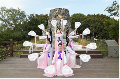 가덕도 연대봉에서 사전 녹화한 성화 채화 영상 송출과 함께 서정원 부산해양경찰서장이 무대에 올라 성화를 안치하는 감동의 순간이 연출되었다.