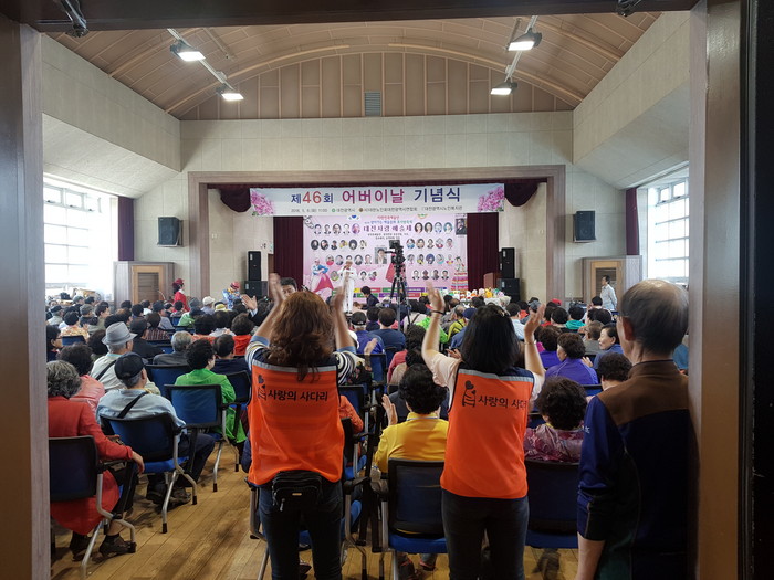 유희자 단장은 “오늘 어버이날에 부모님을 모시는 심정으로 천명의 어르신들게 봉사를 하게 되어서 행복과 보람을 느낀다.“고 말했다.