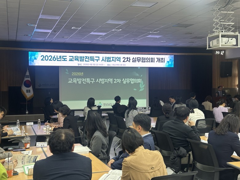 [경남 세계타임즈=최성룡 기자] 경상남도교육청(교육감 박종훈)은 3일 본청 대강당에서 ‘2026년 경남형 교육발전특구* 시범지역’으로 지정된 14개 지역의 교육지원청, 경상남도청, 기초지자체 등 담당자 50여 명이 참여하는 실무협의회를 열었다.