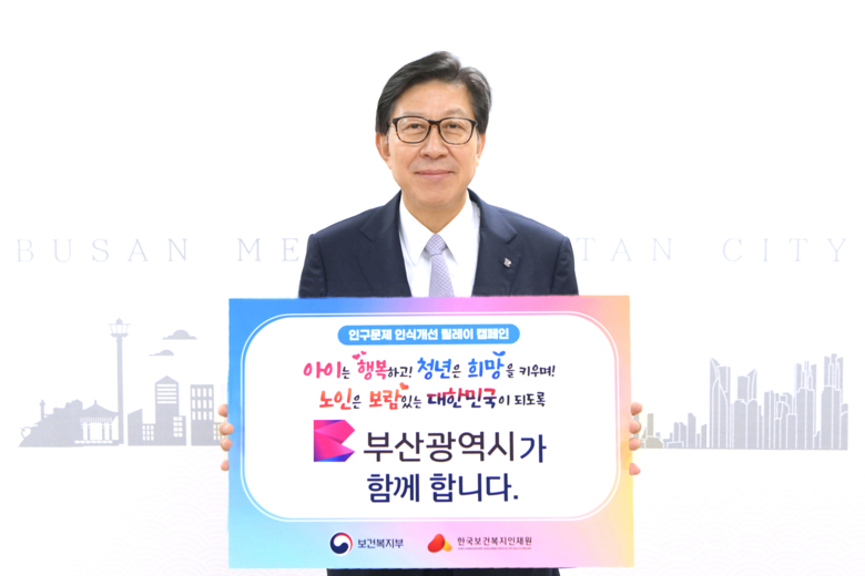 [부산 세계타임즈=이용우 기자] 박형준 부산시장은 저출생과 고령화 등 인구구조 변화로 인한 문제를 알리고 사회적 인식을 개선하기 위한 '인구문제 인식개선 릴레이 캠페인'에 동참했다.