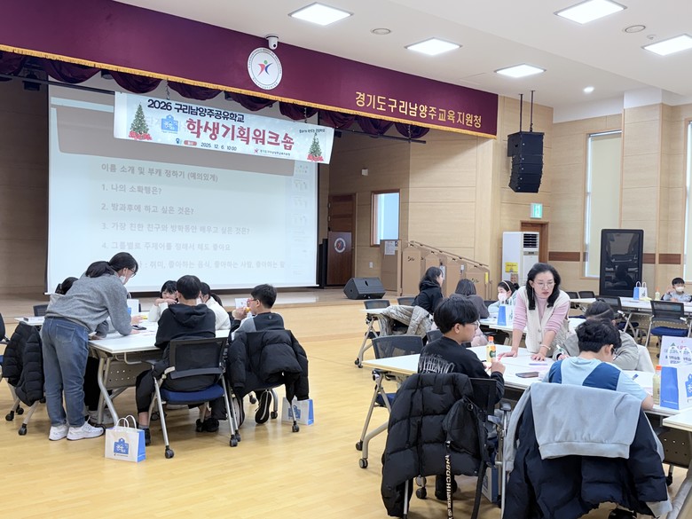 [남양주시 세계타임즈=송민수 기자] 구리남양주교육지원청(교육장 서은경)은 12월 6일(토) 구리남양주 관내 초중고등학생들과 함께 2층 대강당에서 「2026 구리남양주공유학교 학생기획워크숍」을 운영하였다. 이번 행사는 학생이 스스로 프로그램을 기획하며 미래교육의 핵심 가치인 주도성·협력·창의성을 실현하는 자리로 마련되었다.