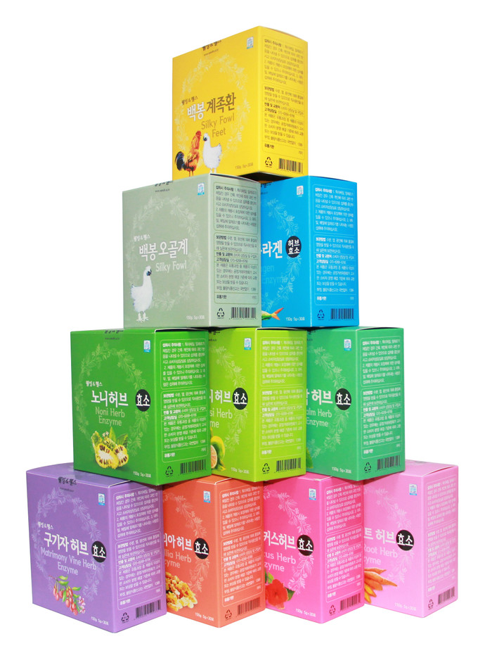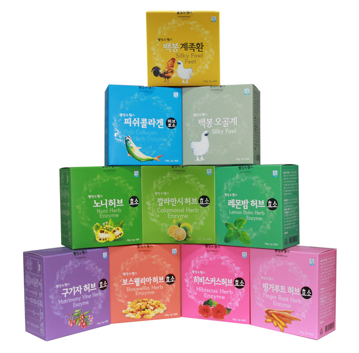 주요 제품군으로는 레몬밤, 보스웰리아, 핑거루트, 깔라만시, 노니, 히비스커스, 구기자, 백봉오골계, 피쉬콜라겐 등을 주원료로 한 등 복합활성허브효소 10종에 이른다. 특히 이번에 출시한 다양한 제품군은 관절과 뼈 건강, 다이어트, 항산화, 피부미용 등에 좋은 다양한 식물군과 오골계, 피쉬콜라겐 등 식자재군을 복합 발효한 신제품이다.