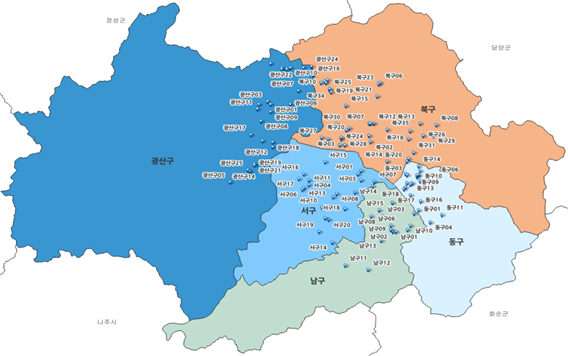 광주시는 국립재난안전연구원의 ‘지역별 열분포도’와 그늘막 설치 현황, 신호기·횡단보도 설치 현황, 지역별 폭염 취약계층(어린이·노인) 거주 및 유동인구 현황 등을 종합 분석했다.