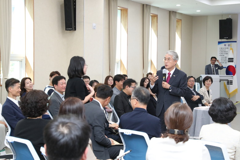 이번 지역교육업무협의회는 ‘약속에서 믿음까지’를 주제로, 지난 10년간 학교 현장의 변화를 이끌어온 혁신교육 정책을 시간·공간·인간관계의 관점에서 조망하고, ‘자립과 공존’이라는 미래교육 가치를 공유하며 논의했다.