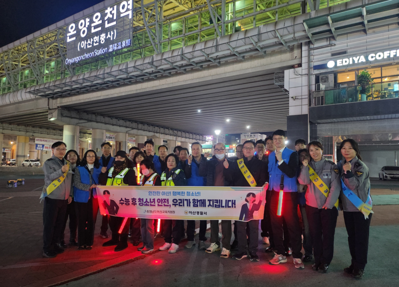 [아산시 세계타임즈=이현진 기자] 충청남도아산교육지원청(교육장 신세균)은 11월 13일 저녁, 수능 이후 해방감에 들뜬 청소년들의 일탈행위를 예방하고 안전한 귀가를 유도하기 위해 지역사회 유관기관과 함께 합동 생활지도 순찰을 실시했다.