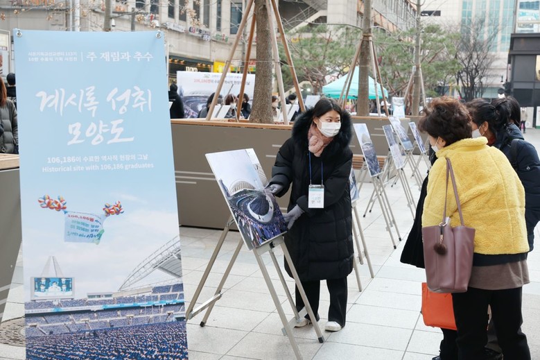신천지 화곡교회는 지난해 11월 20일 대구스타디움에서 열린 ‘시온기독교선교센터 113기 수료식’ 현장을 생생한 사진으로 전하며 106,816명 수료생을 배출한 기쁨을 더 많은 이들에게 전달하기 위해 외부 사진전을 열었다는 후문이다.