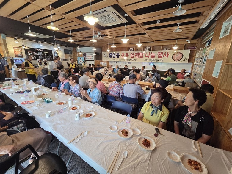 [순천시 세계타임즈=우덕현 기자] 순천시 중앙동 주민자치회(회장 김영주)에서는 지난 18일, 초복을 맞아 천태만상 창조센터에서 중앙동 동민 250여 명을 대상으로 삼계탕 나눔 행사를 추진했다고 밝혔다.