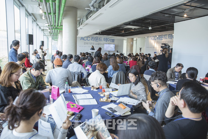 국내 최초 해외문화기관 홍보실무자들 모여 온라인 홍보전략 모색 ACC 라운드테이블은, 해외 문화기관 홍보 실무 담당자들이 ACC에 모여 각 기관의 소셜미디어 전략에 대해 발표하는 국내 최초의 행사로, 방청 신청 초기부터 뜨거운 관심을 받아 80석 정원이 전석 매진되고도 관계 기관 및 소셜미디어에 관심 있는 분들의 계속되는 문의와 요청에 좌석을 증원하여 신청을 받았으나 바로 매진되어 방청객 접수가 마감되었다.