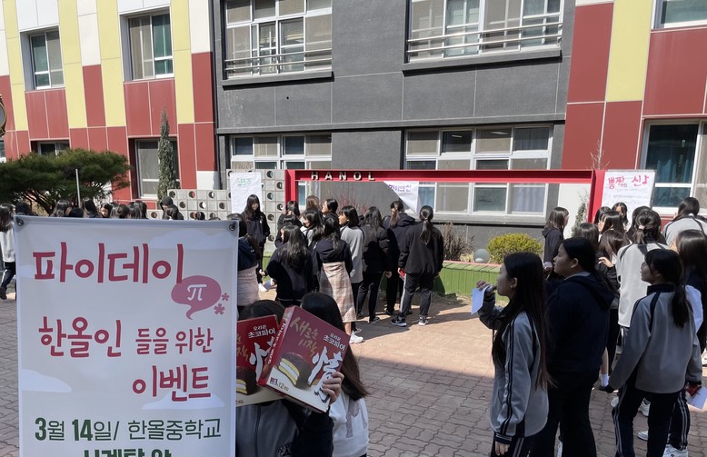 [아산시 세계타임즈=백택기 기자] 온양한올중학교(교장 박성병)는 매년 3월 14일을 파이데이(π-Day)로 정하고 3월 셋째 주를 파이데이 페스티벌 주간으로 수학과 친해지는 프로그램을 개최했다.