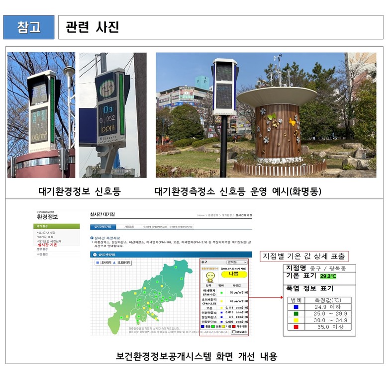 이번 서비스는 부산지역 27개 도시대기측정소의 실시간 기온 자료를 활용해 시민들에게 폭염 상황을 신속히 알리고, 온열질환 등 건강 피해를 예방하고자 마련됐다.