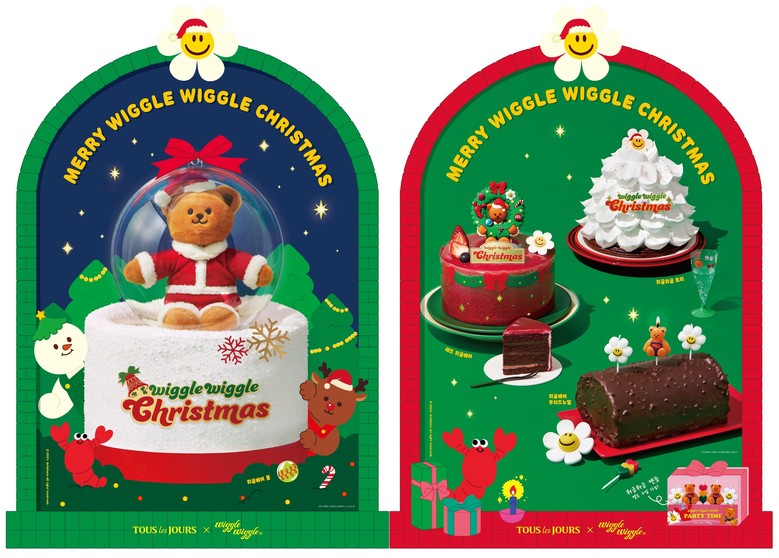 ‘레드 위글베어’ 케이크는 초코 가나슈 생크림에 상큼한 베리 콤포트와 산딸기 크런치를 샌드하고, 레드 *글라사주(glaçage)로 화려함을 더했다. 새하얀 트리 안에 딸기 *꿀리(Coulis)와 베리 크림이 샌드된 반전 매력 비주얼 ‘위글위글 트리’ 케이크도 준비했다. 그 밖에도 통나무 모양의 진한 초코 케이크 ‘위글베어 부쉬드노엘’, 위글위글의 귀여운 비주얼로 변신한 ‘짜잔! 산타’, ‘빼꼼! 루돌프’ 등 톡톡 튀는 제품도 눈길을 끈다.