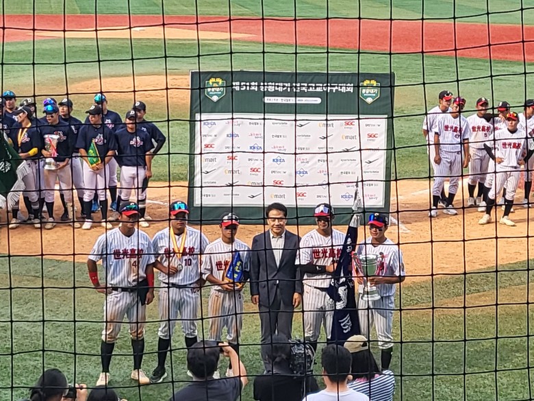 이정배 세광고등학교장은 “많은 동문과 교직원, 학부형, 학생들이 함께 가슴을 뛰게 하는 자리여서 무엇보다 의미가 크다. 준우승이라는 대단한 결과를 만들어준 우리 야구 감독, 코치, 선수들 모두에게 감사를 전한다.”며, “이러한 우리의 발자취를 더 높게, 깊게 남기기를 바라며 세광가족이 이렇게 하나로 결속하는 시간이 계속 이어지기를 소망한다.”며 선수단과 세광가족에게 모든 공을 돌렸다.