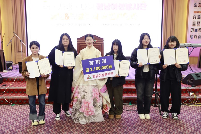 이날 장학생으로 뽑힌 창원상남중학교 3학년 박00군 외 6명의 학생들에게 210만 원의 장학금 전달했다 .특히 경남여성봉사단 단원들은 국민 밥상 무료 급식에 적극적으로 후원에 이어 그동안 땀 흘려 봉사에 참여한 후원자들에게는 수상의 영광도 안았다.