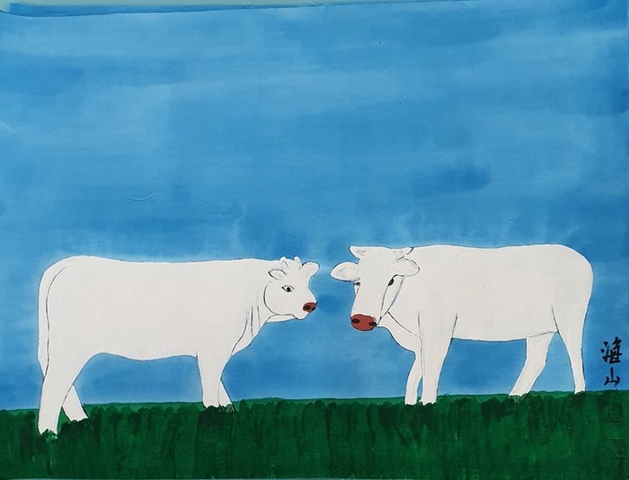 그는 그때 프랑스 파리 소르본대학에서 서양화를 배우며 실력을 연마하며 자신의 몸에서 피를 뽑아 어머니의 한복 속 치마 인견에 생명력 충일한 말을 형상화한 놀라운 작품을 선보인다.