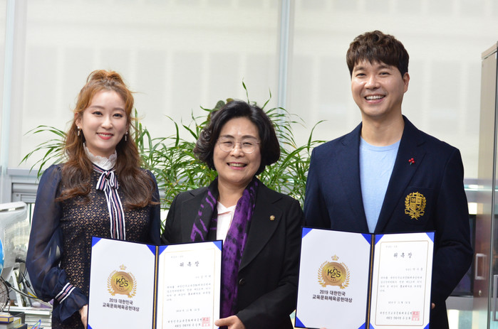 인기 방송인 박수홍씨와 가수 김지원씨가 “2019대한민국교육문화체육공헌대상”을 알리는 홍보대사로 위촉됐다.