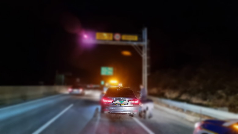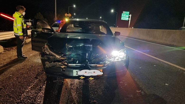 대전통영고속도로에서 A씨의 사고차량을 출동한 경찰이 살펴보고 있다. 사진=제보자 제공