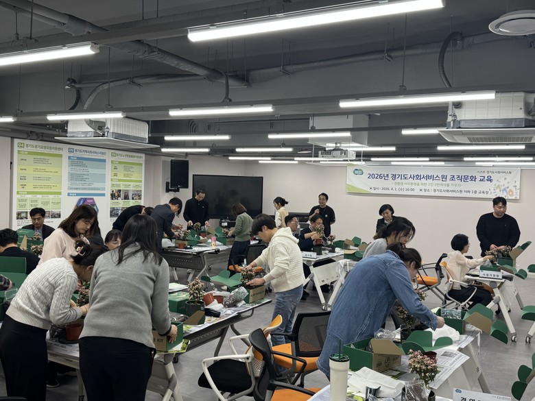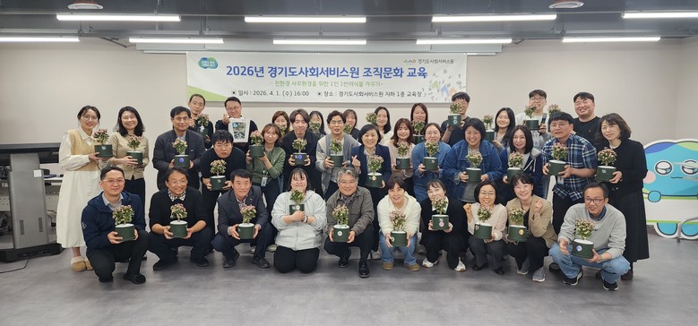 이번 조직문화 교육은 경기도사회서비스원 본부 전 직원을 대상으로 ‘탄소중립 실천과 지속가능한 사무환경 구축’을 소주제로, 장애인직업재활시설 ‘혜성일터’ 소속 강사가 진행하였으며, 직원들이 직접 화분에 식물을 심는 체험형 교육으로 운영됐다.