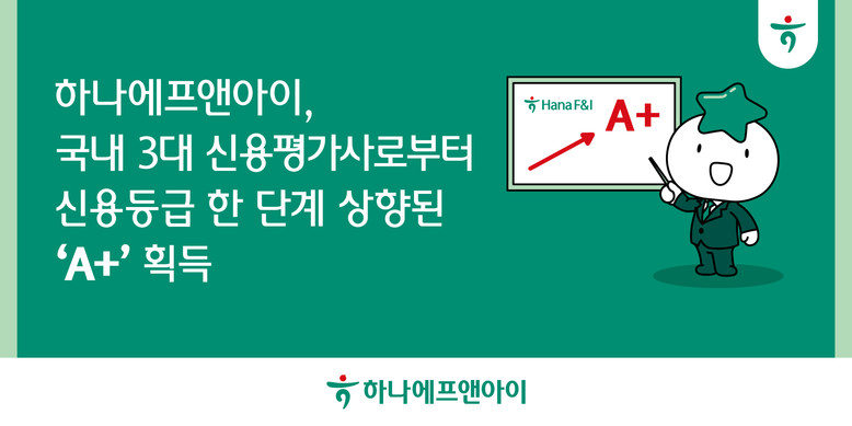 이는 올해 1월말 하나에프앤아이가 제187회 회사채를 발행하면서 평가받은 신용등급 전망이 ‘A0(안정적)’에서 ‘A0(긍정적)’으로 상향된 지 약 10개월 만에 이뤄낸 성과로, 안정적인 수익성과 자본적정성을 바탕으로 시장점유율을 지속적으로 확대해 온 점을 높이 평가받은 결과다.