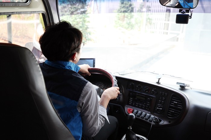 | ▲한 버스 운전기사가 구부정한 자세로 운전하고 있다. |