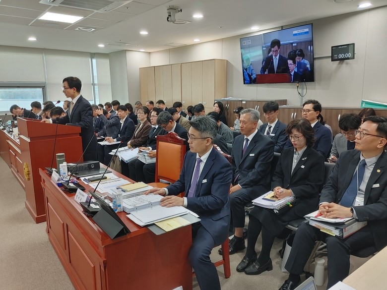 | ▲경기도일자리재단 윤덕룡 대표이사 업무보고 발표 및 피감중인 관계자들 모습. |