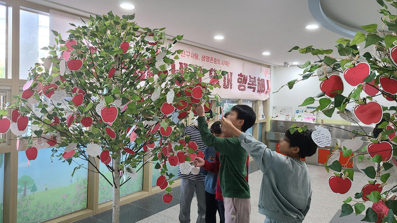 특히 청소년모바일상담센터와 함께 운영하는 학생동아리인 '생명존중의 숲'에서는 <친구사랑, 생명존중의 시작>이라는 주제로 전교생이 참여할 수 있는 특별한 캠페인을 기획하였다. 친구사랑과 생명존중의 의미를 담은 문구를 하트로 채우는 이번 캠페인을 통해 학생들은 친구사랑과 생명존중의 중요성을 경험할 수 있었다.
