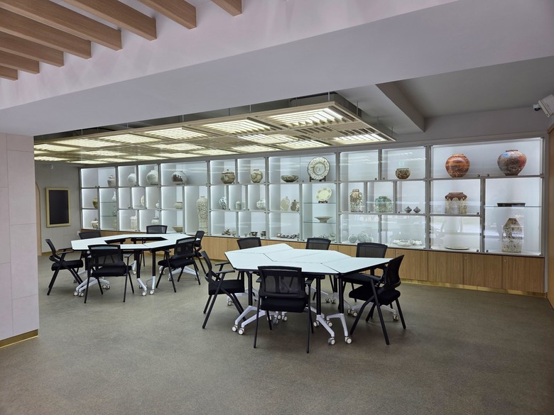 로비공간에 들어서면 충효동 가마터의 대표적 유물인 ‘어존’이 새겨진 잔을 형상화한 조형물이 관람객을 맞이한다. 첨단 기술인 70인치 대형 투명디스플레이를 활용한 가마터 발굴 토층 축소 모형을 통해 분청사기에서 백자로의 변천과정도 한눈에 볼 수 있다.