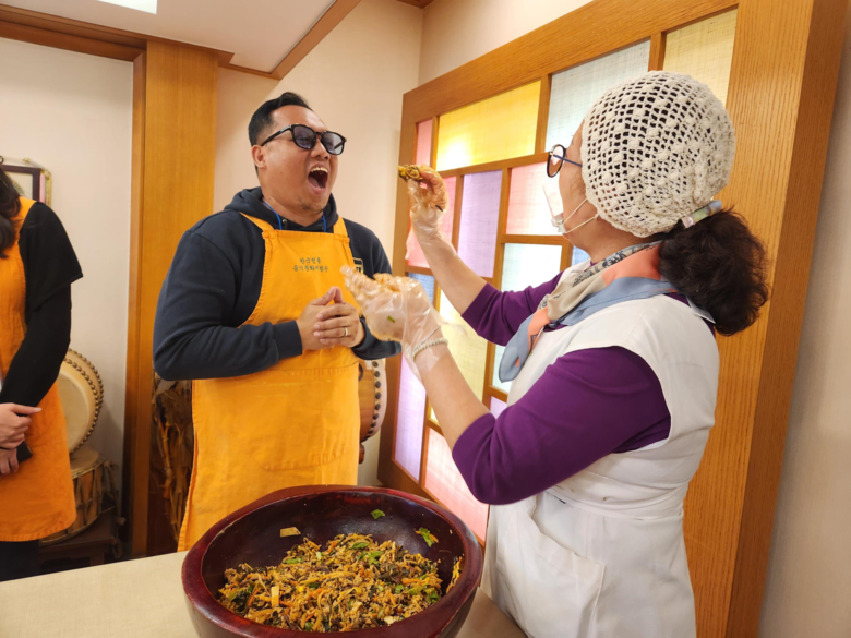 먼저, 첫째 날 평창에서는 한국전통음식문화체험관인 ‘정강원’을 방문하여 한국 전통음식의 역사와 철학을 배우고 직접 음식을 만들어보는 체험을 통해 한식의 가치와 매력을 경험했고, 이후 대관령 삼양라운드 힐로 이동하여 지속 가능한 관광 운영과 지역경제 활성화 사례를 살펴보며 친환경 관광 콘텐츠의 경쟁력과 상생 모델을 공유했다.