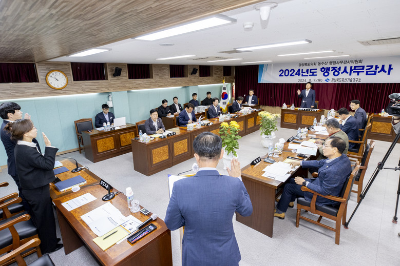 [경북 세계타임즈=한윤석 기자] 경북도의회 농수산위원회(위원장 신효광)가 7일 축산기술연구소와 수산자원연구원을 상대로 실시한 2024년도 행정사무감사에서 지적보다 현장의정활동에서 얻은 대안을 제시해 귀감이 되고 있다. 의원들은 분야별 현안을 심도 있게 점검하고, 특히 축산과 수산분야 연구인력 확충의 시급성을 한목소리로 강조했다.